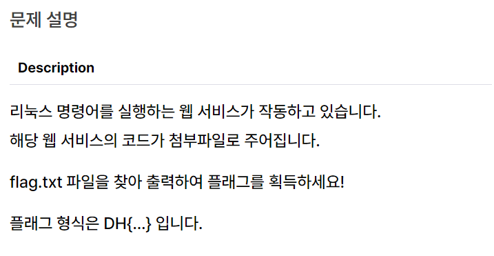 리눅스 명령어를 실행하는 웹 서비스라고 합니다. begginer 문제이기 때문에 ls, cat 두개로 풀 수 있을 것입니다.